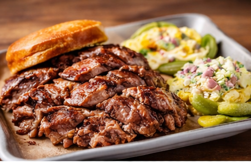 Slow-smoked brisket served with two sides